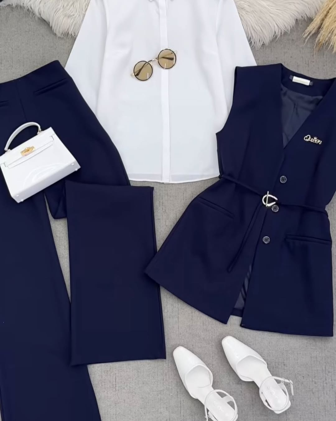 Upgrade your wardrobe with this elegant women’s two piece outfit set featuring a chic vest, tailored trousers, and a classic shirt. Perfect for office wear, business meetings, casual outings, and formal events, this stylish outfit combines comfort with sophistication. Pair it with heels or flats and a mini handbag for a modern, classy look. A must-have for women who love fashion-forward and versatile clothing.