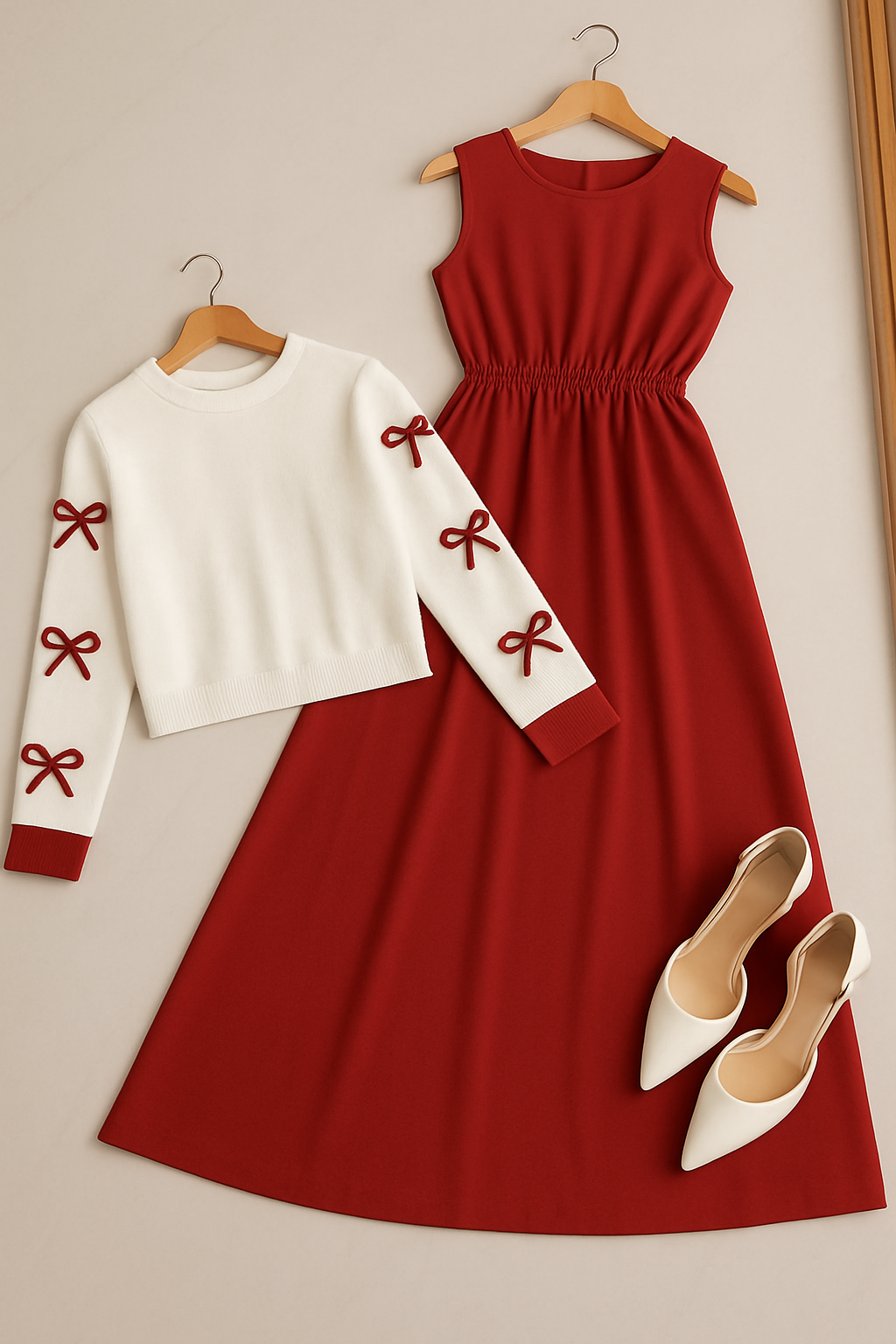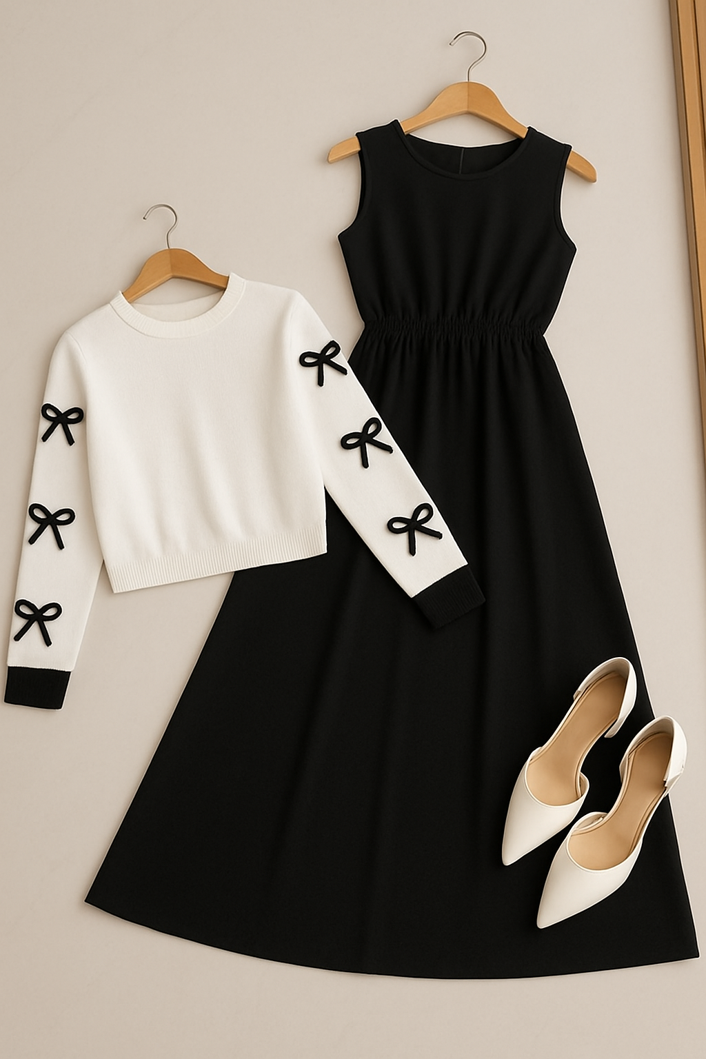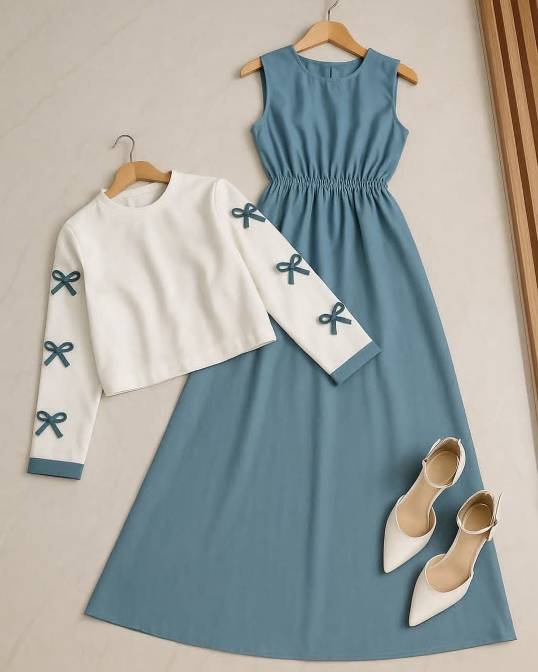 Upgrade your wardrobe with this 2 Piece Women’s Dress Set, designed for both casual wear and party wear. The outfit includes a sleeveless maxi dress paired with a stylish long-sleeve top decorated with chic bow details, giving you a perfect balance of elegance and comfort.